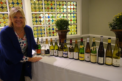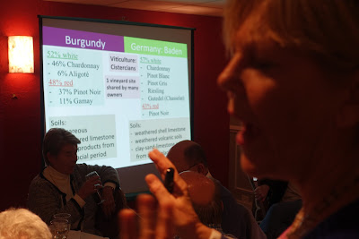 Annette Schiller led a tasting comparing French and German wines. More specifically, the tasting focused on Burgundy and Alsace in France and Baden and the Pfalz in Germany.