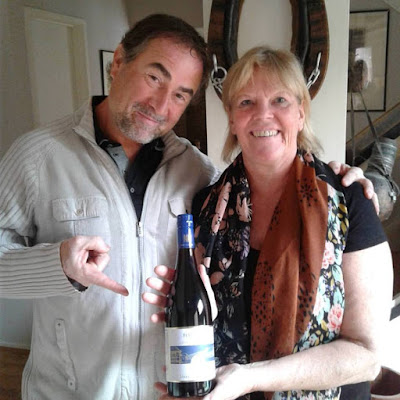 Picture: Pascal Salvadori of US Importer Esprit du Vin and Annette Schiller with 2015 Markgraf von Baden, Bermatinger Spätburgunder