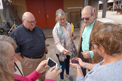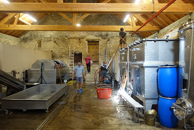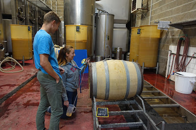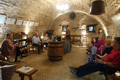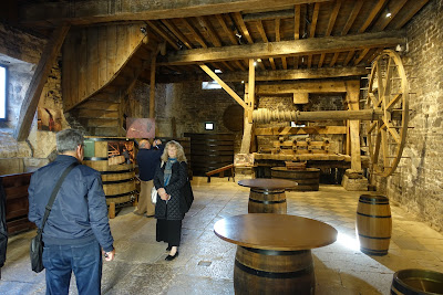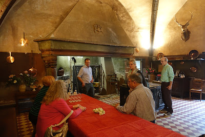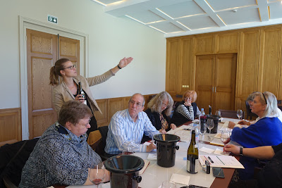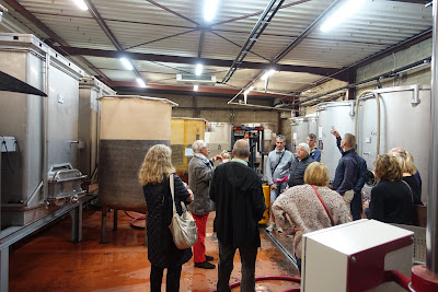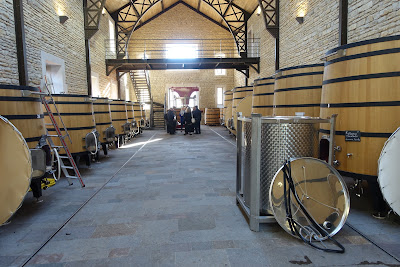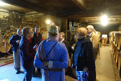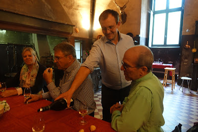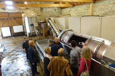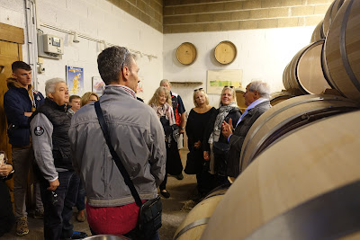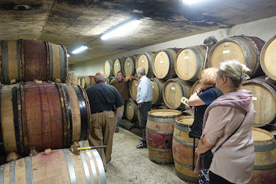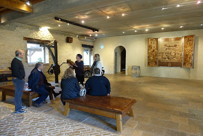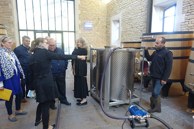 The day started with a most educational and fun tour at Chateau de Pizay. The cellar is home to 8 discovery stations where you go on an initiatory journey of the wine making process in which you discover the basics of wine - tasting with quizzes on colour, aroma, flavour, flavour interactions, tannin, the difference between aromas and flavours, using oak barrels and the aging of wine. The tour ends in the tasting room. We also tasted 12 wines from the estate, both reds and whites.