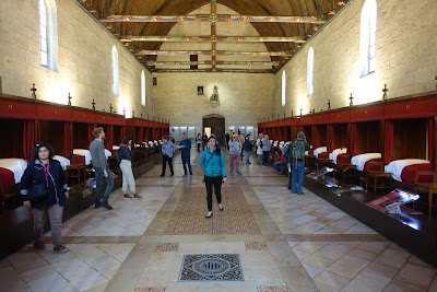 The Hospices de Beaune was founded in 1443 by Nicolas Rolin, chancellor of Burgundy, as a hospital for the poor and needy. It is still a hospital but services for patients are now provided in different buildings. The original hospital building, the Hôtel-Dieu, is one of the finest examples of French fifteenth-century architecture. The original building was used until 1971 as the hospital of Beaune and home for the elderly. Today the entire building has been converted to a museum. From the very beginning the Hospices benefitted from donations of land, money and vineyards from former patients and wealthy benefactors. The Hospices are now the owners of 135 acres of vineyards, including some of the most sought-after parcels in Burgundy. Every year on the third Sunday in November a charity wine auction (only barrels of the just harvested vintage) is organized at the Hospice which attracts bidders and wine aficionados from around the globe, and pretty much sets the price for that vintage of Burgundy wines.
