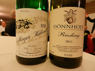 For a number of years now, around this time, one of the best German wine retailers in the USA, Phil Bernstein of MacArthur Beverages, has been making a presentation at the German Wine Society (Washington DC Chapter) on the new vintage. This time, it was vintage 2011. He brought 5 flights plus a special treat. All the 5 flights were fruity sweet wines, while the special treat was a flight of 3 Grosses Gewaechs wines – Germany’s ultra-premium dry grand cru wines - from Weingut Gut Hermannsberg in the Nahe Valley.