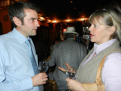 The restaurant is on the ground floor and on the first floor you find a nice lounge area with a bar. Currently, on Monday and Wednesday, Jazz groups are performing in the lounge and on Tuesday, between 6 and 8 am, you have a little wine tasting. This time, the wine tasting was a very special one, because the guest was Thomas Schlumberger from Domaines Schlumberger in Alsace. He presented 4 wines.