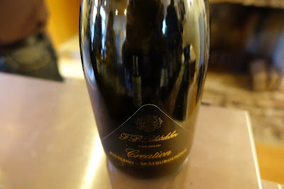 We started with a visit of the Sekt-producing facilities, followed by a wine tasting in the tasting room of Wein- and Sektgut F.B. Schönleber. After checking into our rooms at the hotel, we had a lovely dinner at the restaurant of Wein- and Sektgut F.B. Schönleber. Bernd, Ralf and their father joint us for part of the dinner. I had Steak Tartare.
