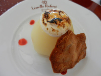 Poached Williams Pear in Caramelized Custard