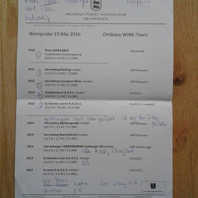After lunch, we toured the new winery. The visit ended with a sit down tasting of more Weingut Fürst Hohenlohe Oehringen wines, led by Joachim Brand.